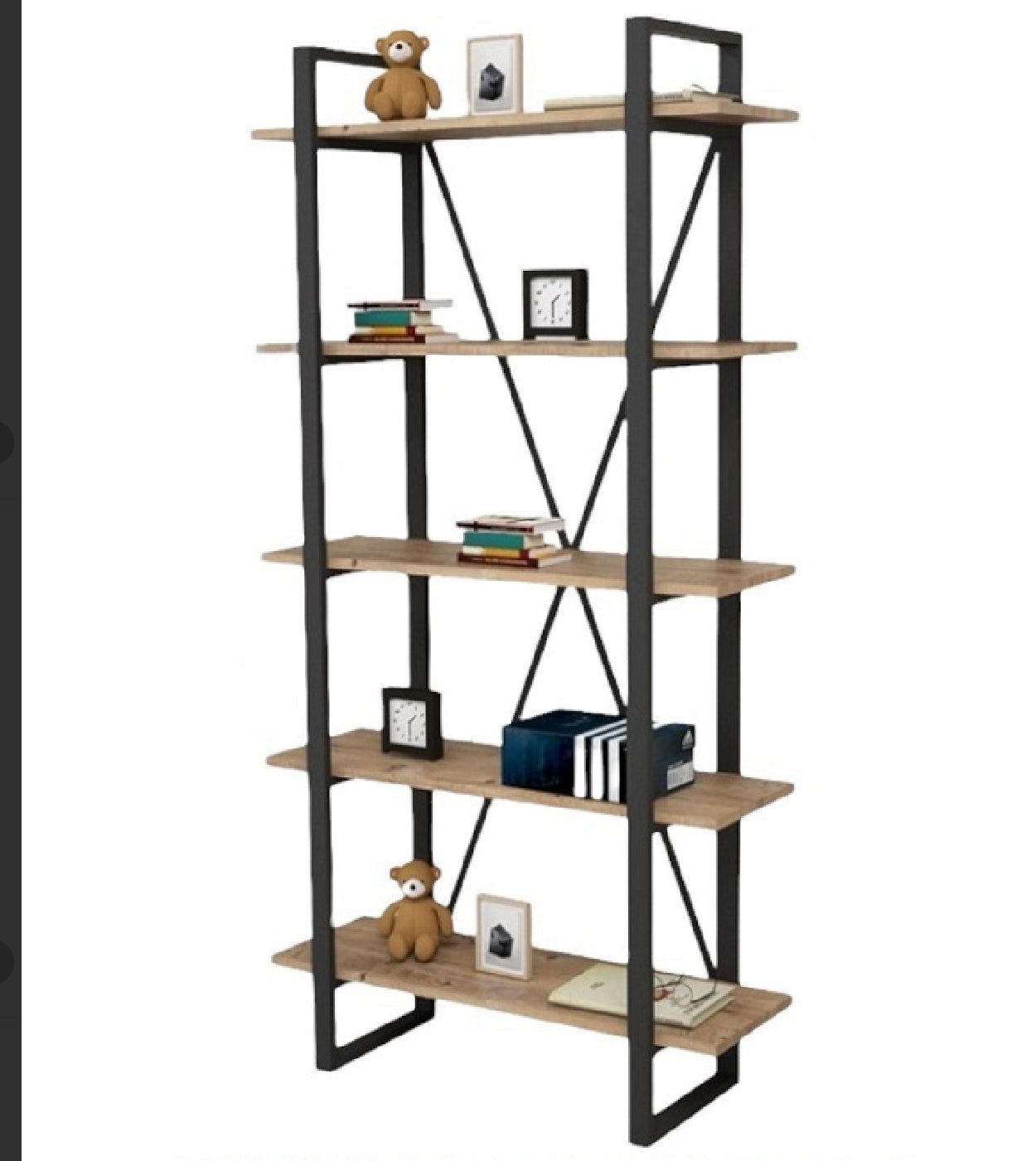 ספרייה מתכת ווד לוני - 5 מדפי עץ מלא